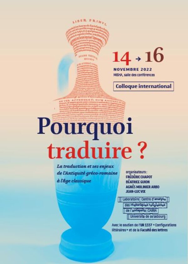 La prochaine séance du séminaire doctoral du CARRA se tiendra le mercredi 17 Avril 2024, de 14h à 16h en salle 409 au Portique. Le programme en sera le suivant : - Communication scientifique : Rova Lyon, "La démesure des personnages d'Eschyle : un trait typologique de la jeunesse ?". - Point…